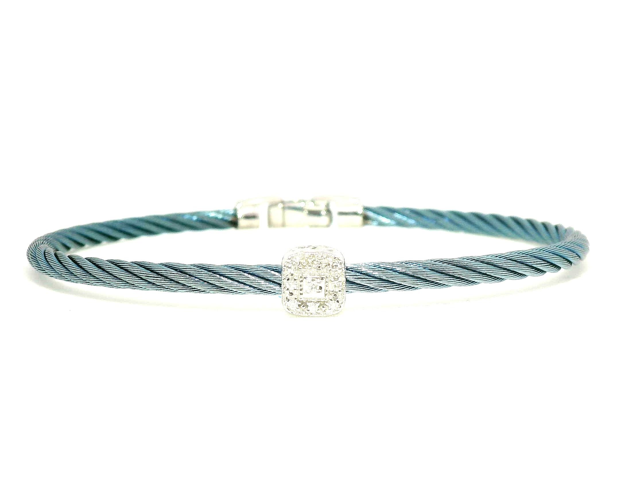 (732) 247-4454Island Blue Stainless Steel & 14K Diamond Station Bangle Bracelet – ALOR, Length 7"