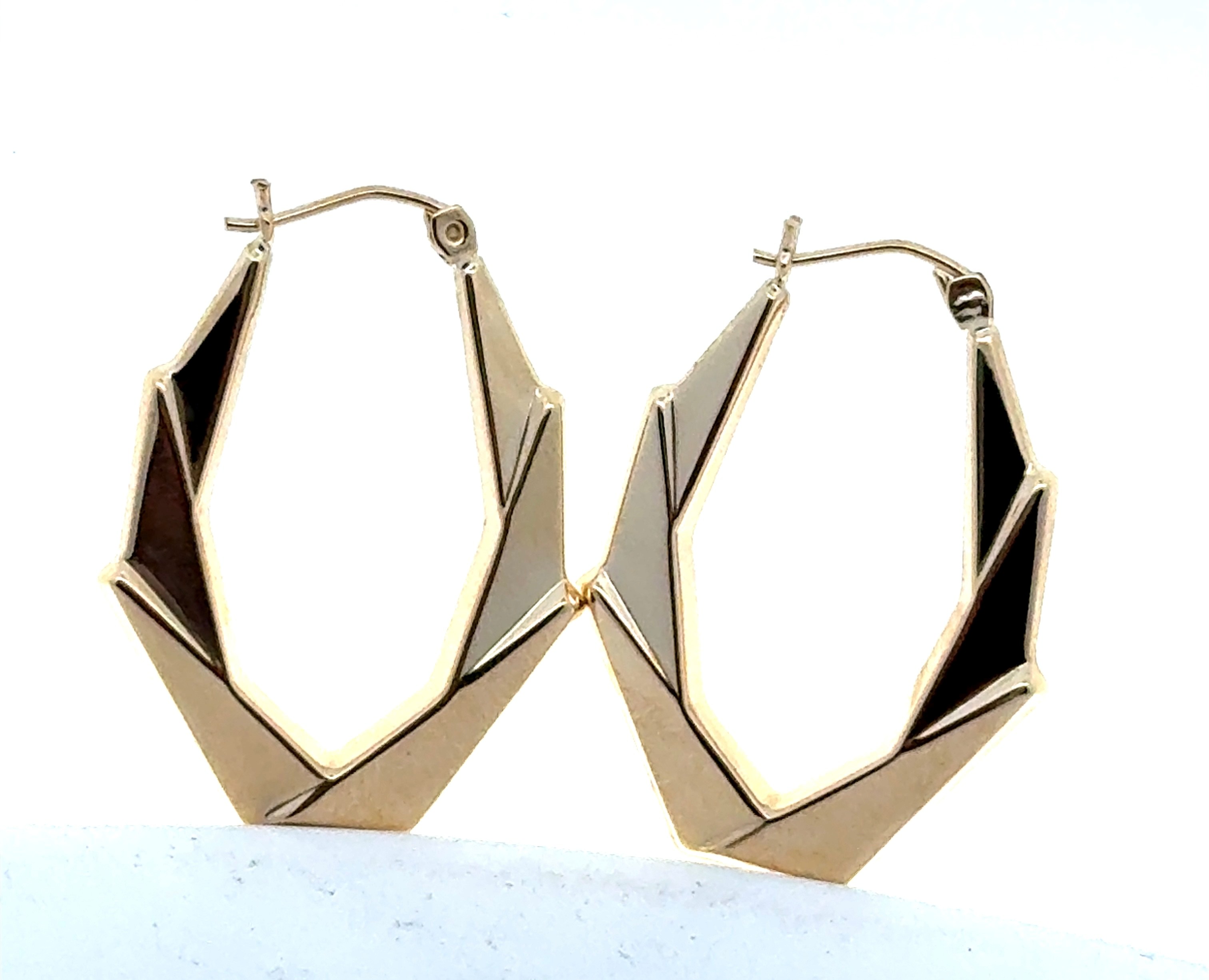 (732) 247-445414K Yellow Gold Elongated Textured Diamond Cut Hoop Earrings