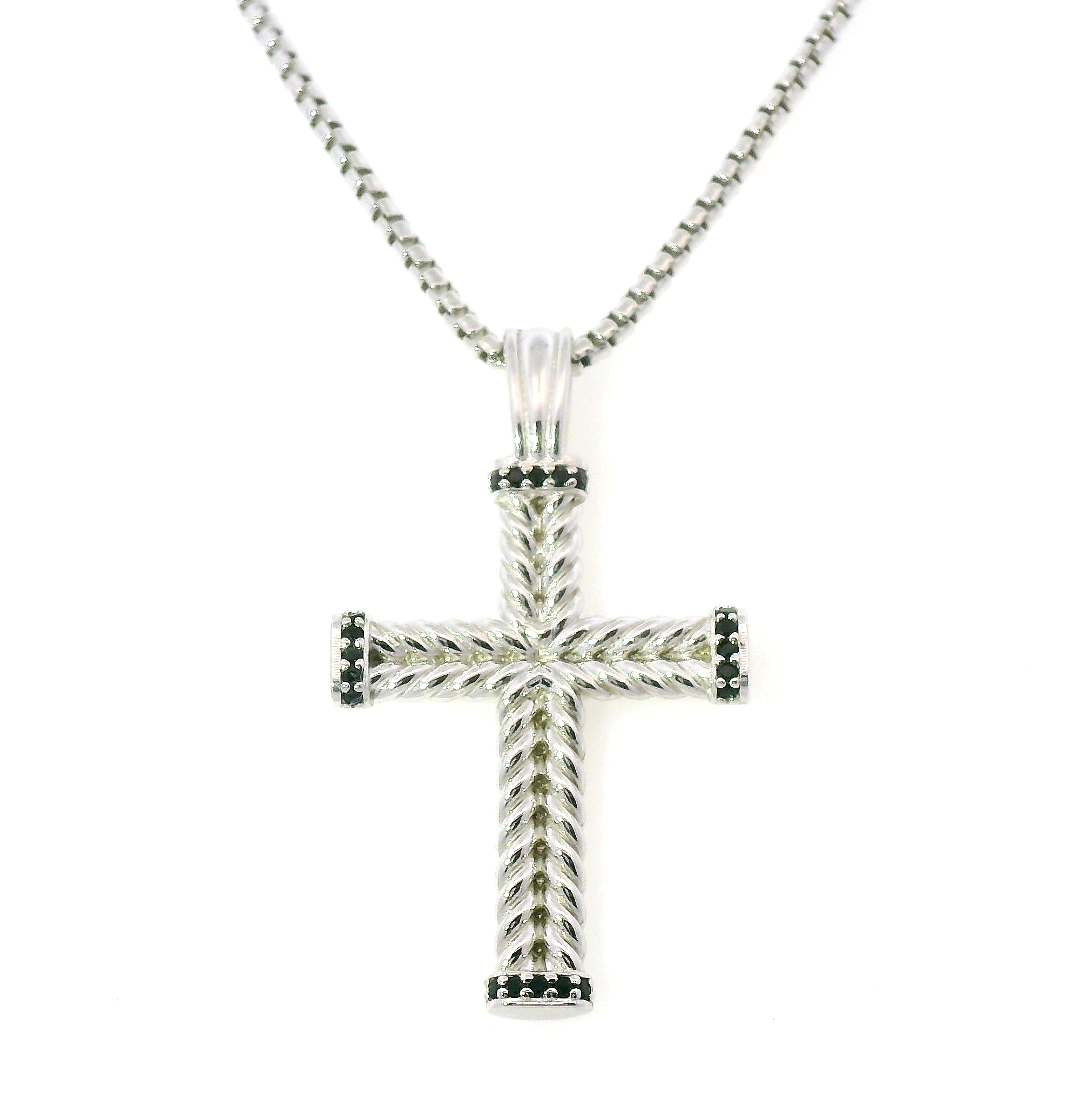 (732) 247-4454Men’s Sterling Silver Cross Pendant with Rolo Chain – 20”