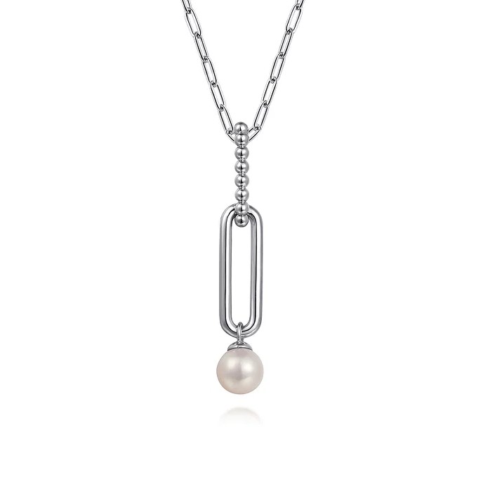 (732) 247-4454Sterling Silver Paperclip Pearl Drop Pendant – Freshwater Pearl (17.5")