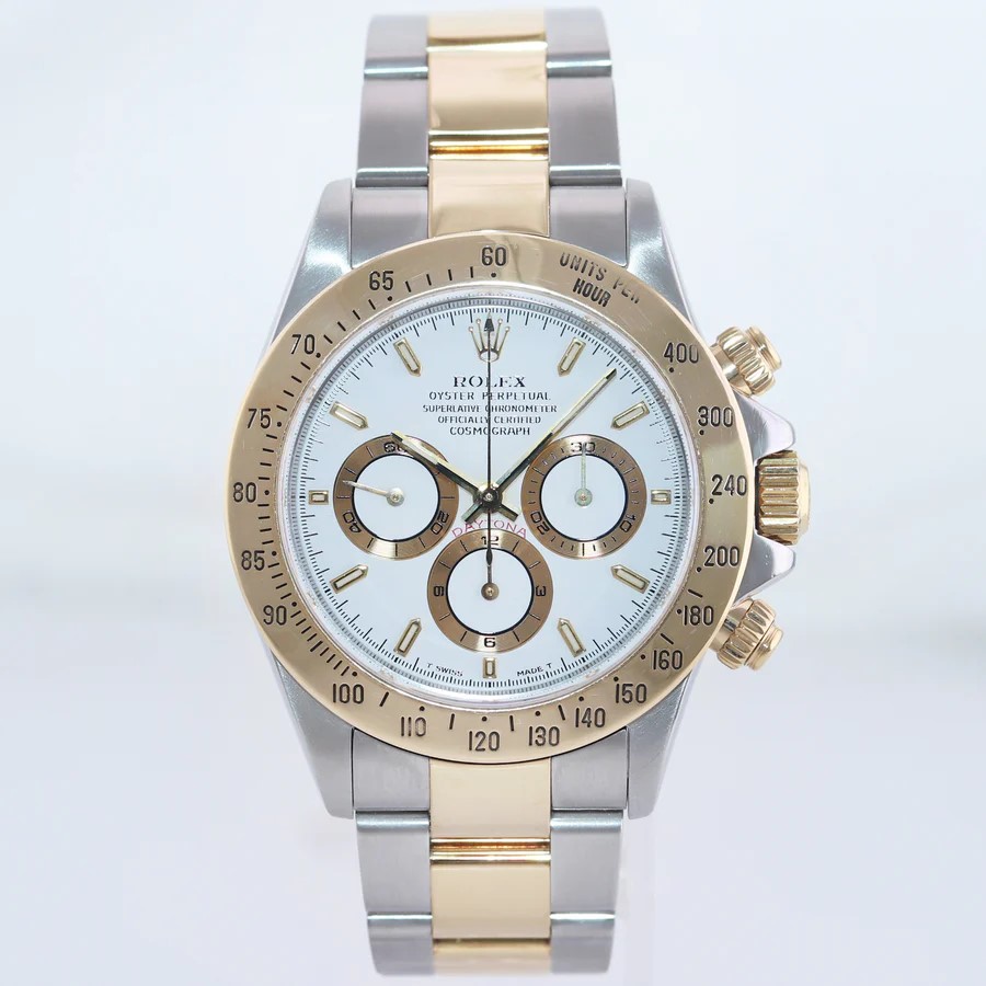 (732) 247-4454Rolex Daytona 40mm – Two-Tone 18K Yellow Gold & Stainless Steel – White Dial – Model 16523 (1996)