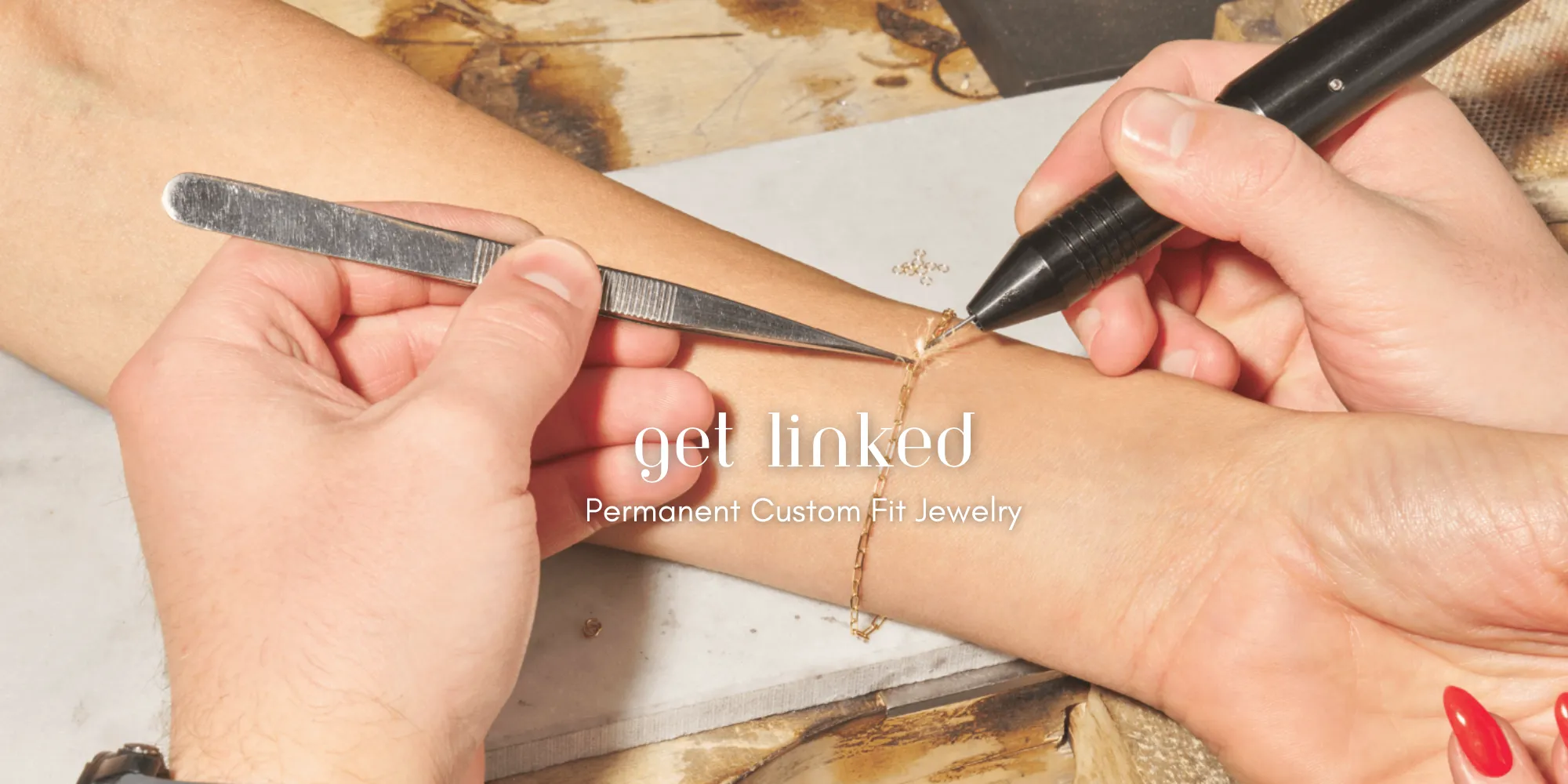 Get Linked is a collection of permanent jewelry done on premises in our Somerset, NJ location. The collection includes permanent bracelets, anklets, and necklaces in 14k gold. Choose your chain and then get zapped by our jewelers directly onto your wrist, ankle, or neck.